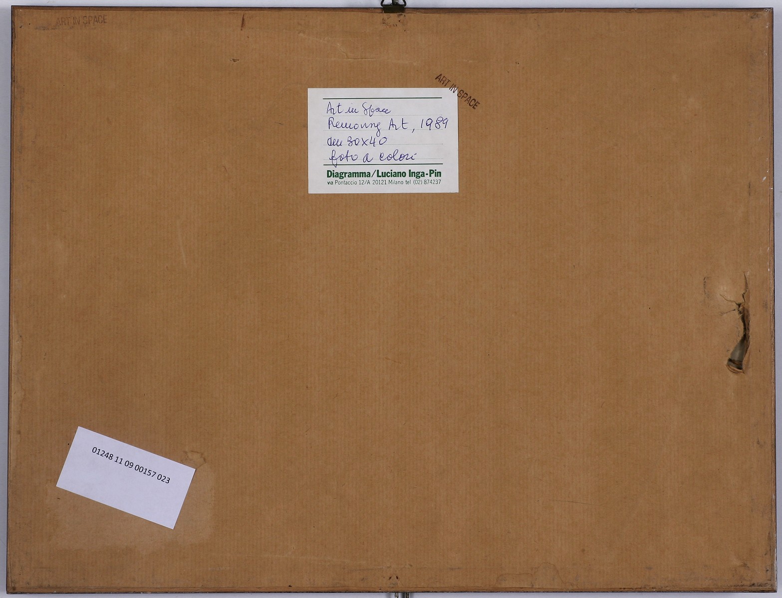 Firma data e titolo in basso a matita. Al retro reca il cartiglio della galleria Diagramma Luciano Inga-Pin, Milano. Cornice presente.