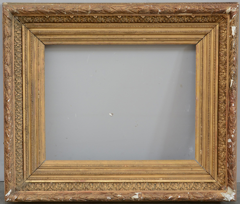Cornice rettangolare in lengo e pastiglia dorata, decorata a motivi vegetali, fine sec. XIX (cm 67x52) (difetti e mancanze)