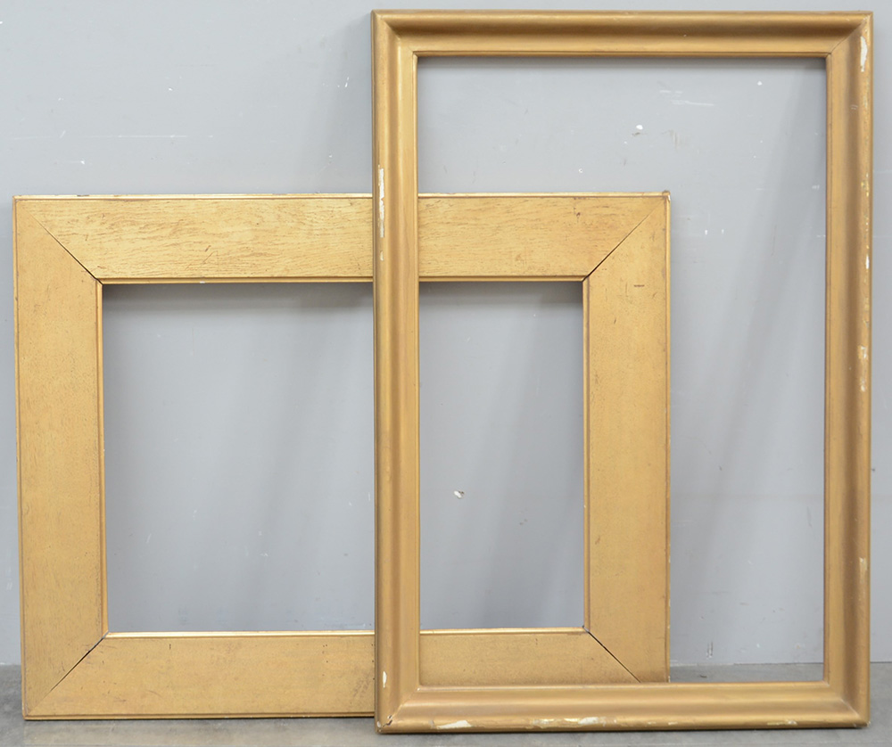 Lotto composto da due cornici rettangolari in legno dorato di misure diverse (difetti)