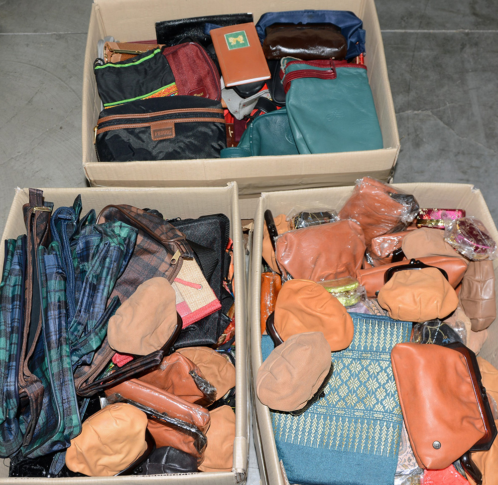 Lotto tre cartoni contenenti numerosi oggetti e portafogli