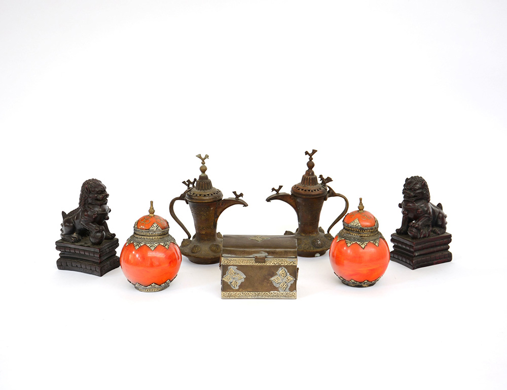 Manifatture diverse. Lotto composto da sette oggetti in metallo, ceramica e resina (difetti)