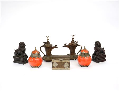 Manifatture diverse. Lotto composto da sette oggetti in metallo, ceramica e...