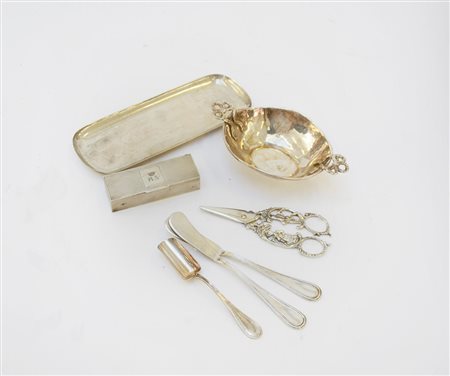 Lotto composto da sette oggetti in argento (gr 300 ca.) (difetti)