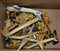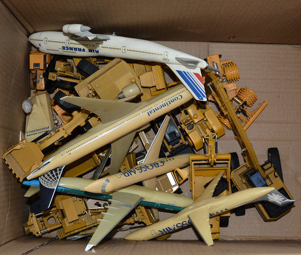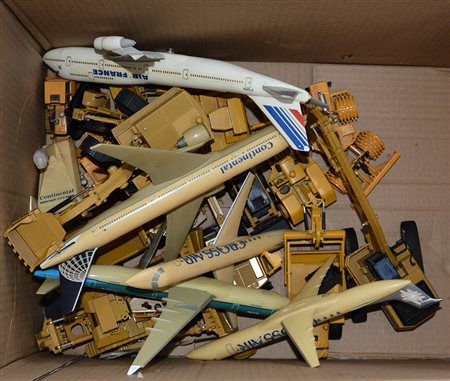 Cartone contenente alcuni giocattoli in metallo e plastica