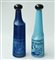 Coppia di bottiglie con tappi in vetro azzurro. Firmate Dalì