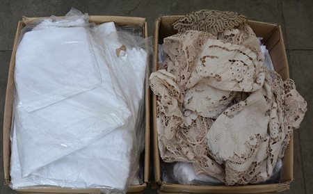 Lot 1894 | Lotto di due cartoni contenenti pizzi, tovaglie e altri tessuti