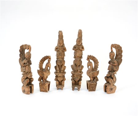 Lotto di sei sculture orientali raffiguranti divinità e animali, misure...