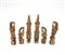 Lotto di sei sculture orientali raffiguranti divinità e animali, misure diverse (difetti)