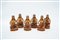 Lotto composto da sei sculture in legno intagliato e laccato in policromia raffiguranti suonatrici indiane (difetti) (h. 27 cm.)