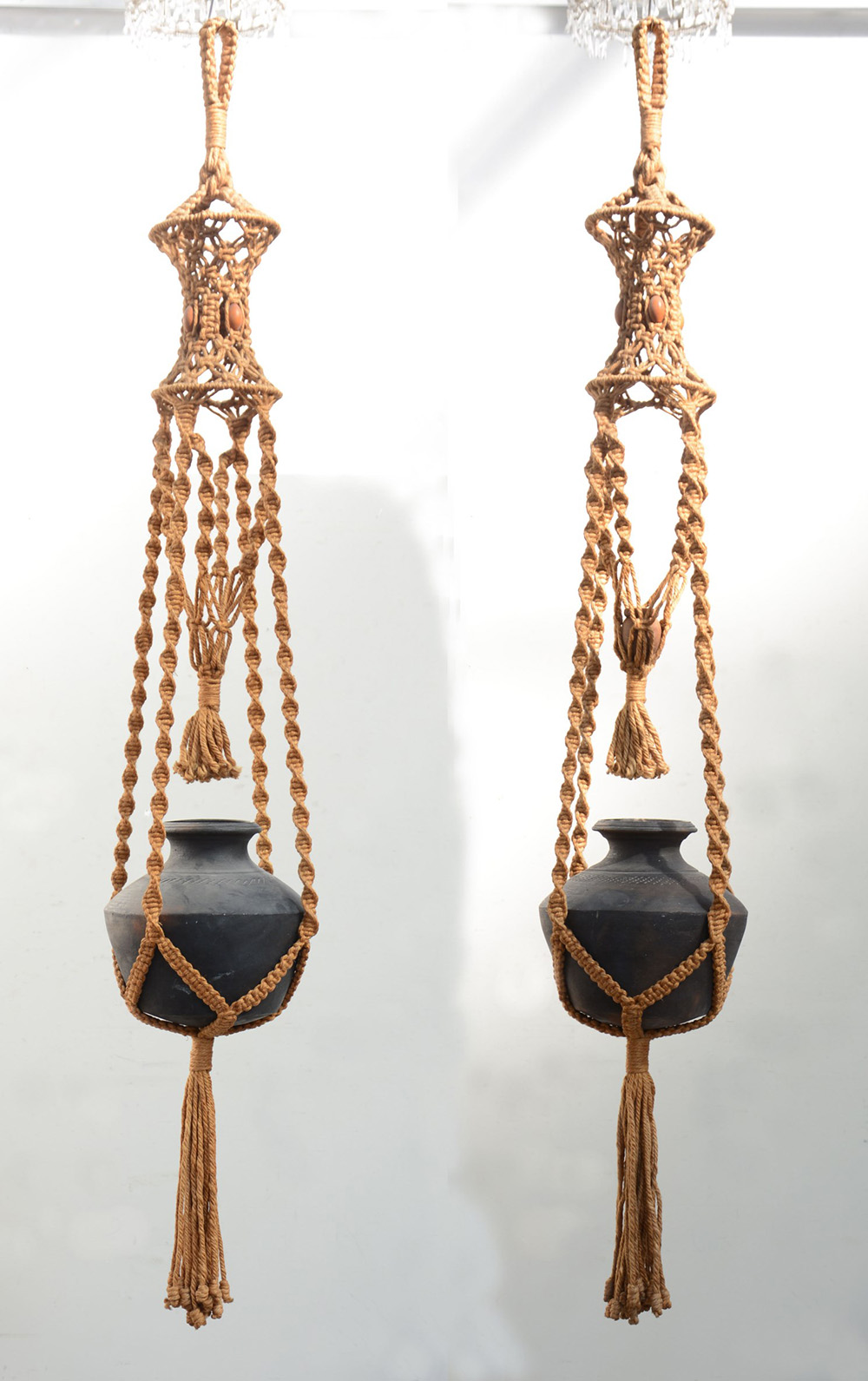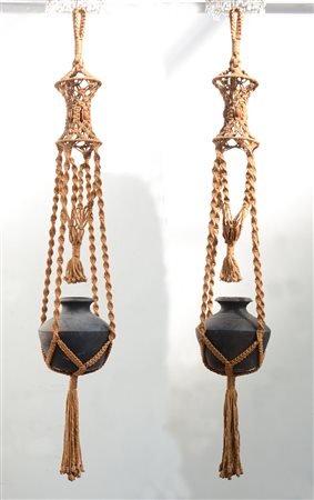 Lot 1992 | Coppia di vasi portafiori in terracotta con sostegno in corda (difetti)