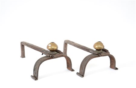 Coppia di alari in ferro battuto e bronzo (difetti)