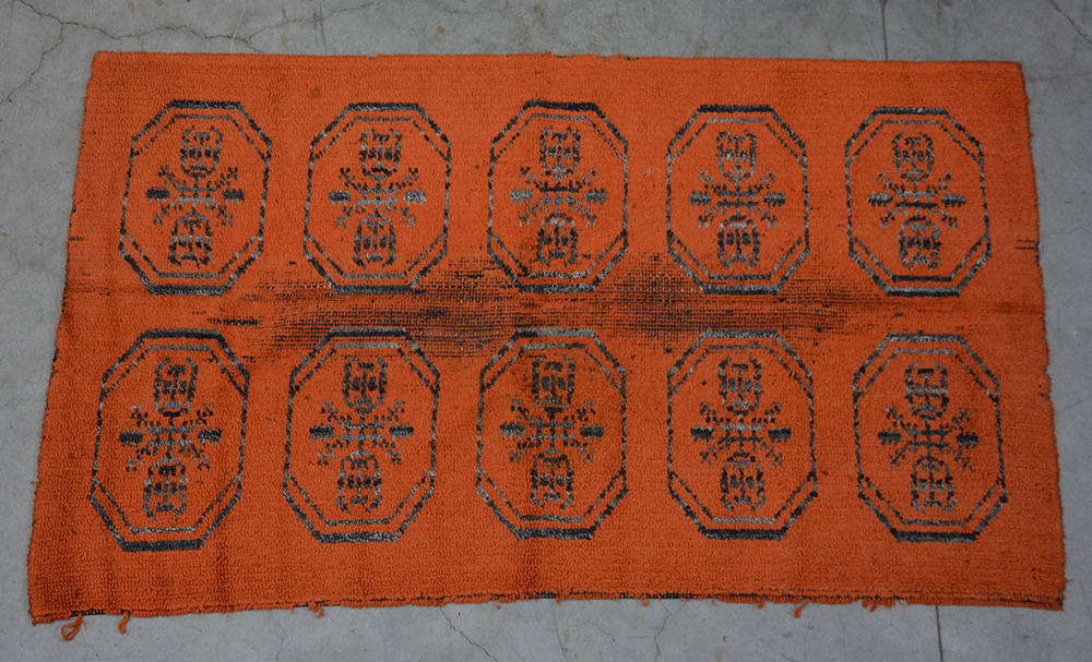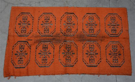 (Tappeto) Tappeto Bouclé, Sec. XX tessuto in lana arancio con decorazione...