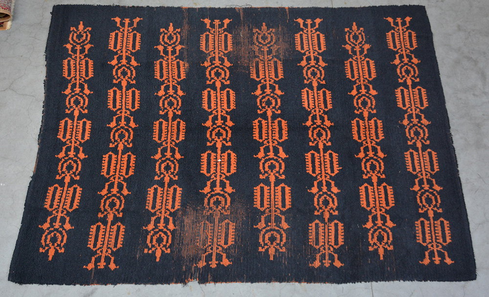 (Tappeto) Tappeto Bouclé, Sec. XX tessuto in lana nera con decorazione...