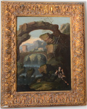 Ignoto "Santo eremita" olio su tavola (cm 49x35,5) in cornice (difetti e restauri)