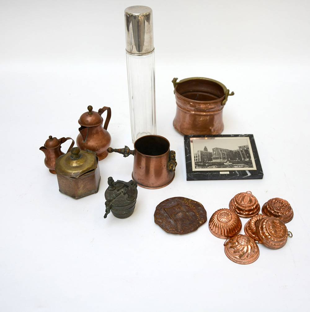 Lotto composto da un portapesi, una piastra con scorcio di Gaeta e alcuni oggetti in rame e materiali diversi (difetti)