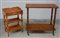 Piccolo étagère in legno tinto a due pianetti e un cassetto sottopiano unito a un carrello portavivande (difetti)