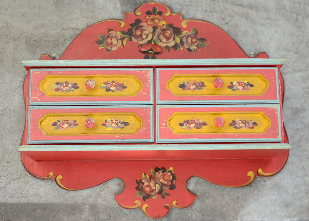 Lot 2170 | Piccolo mobile pensile in legno laccato decorato a fiori (cm 44x40) (difetti)