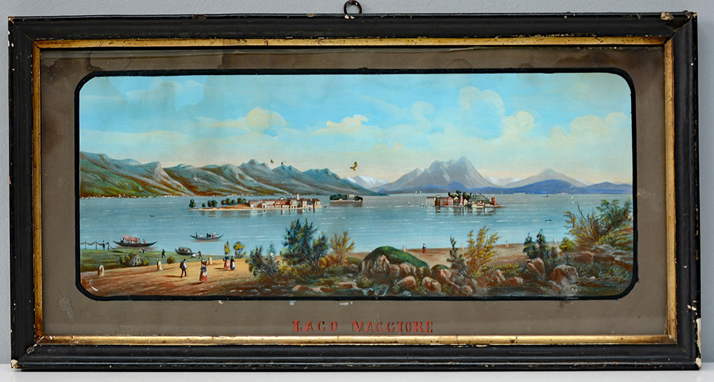 Scuola del sec. XIX "Lago Maggiore" gouache su carta (cm 25x57) in cornice