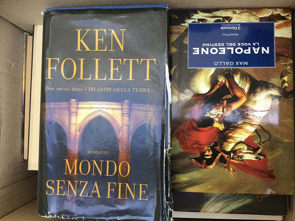 Lotto composto da libri di diverso argomento ed epoca, fra cui romanzi e opere di storia. In tre cartoni.