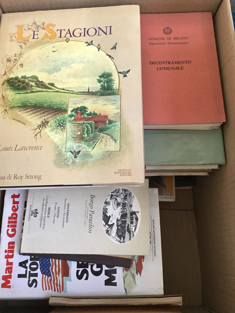 Lotto composto da numerosi libri di vario argomento, fra cui romanzi. In due cartoni.