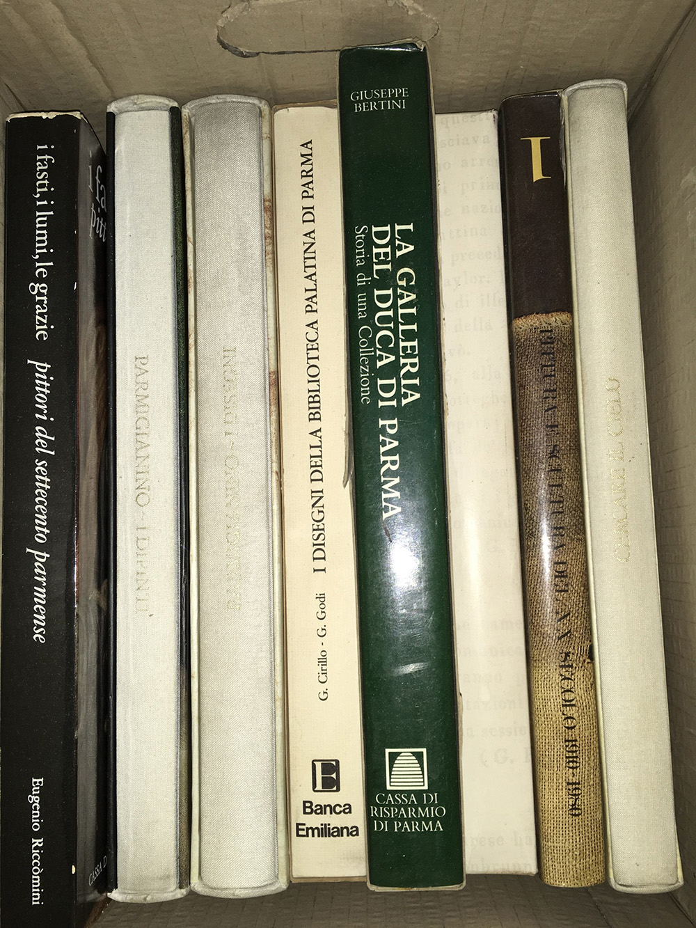 Lotto composto da svariate pubblicazioni sull'arte, principalmente nella città di Parma. In tre cartoni.