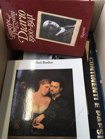 Lotto composto da romanzi e libri di storia, arte e geografia. In 5 cartoni.