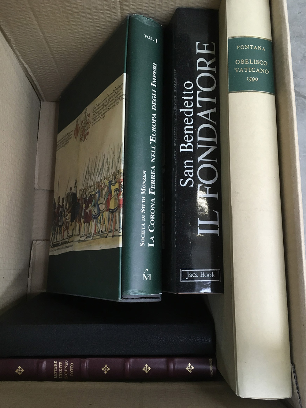 Cartone contenente pubblicazioni di diversi aspetti dell'epoca medioevale e rinascimentale in Italia.