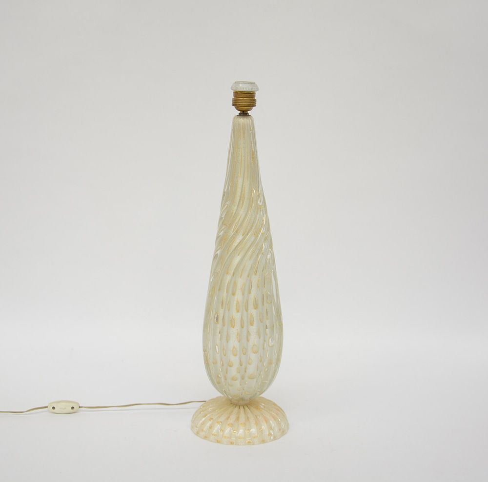 Manifattura di Murano Lampada da terra in vetro sommerso costolato e a bolle con inclusione di polvere d’oro. Produzione recente (h cm 53) (lievi difetti)
