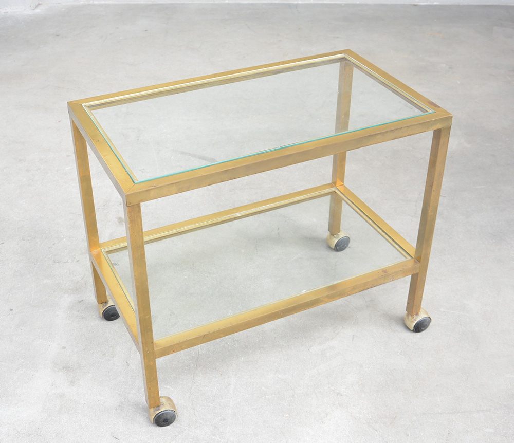 Carrello portavivande in ottone con ripiani in vetro. Italia, anni '70 del sec. XX (cm 70x60x40) (difetti)