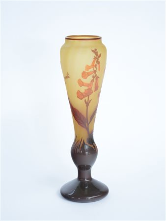 Vaso in vetro a cammeo di gusto liberty. Imitazione della scuola di Nancy