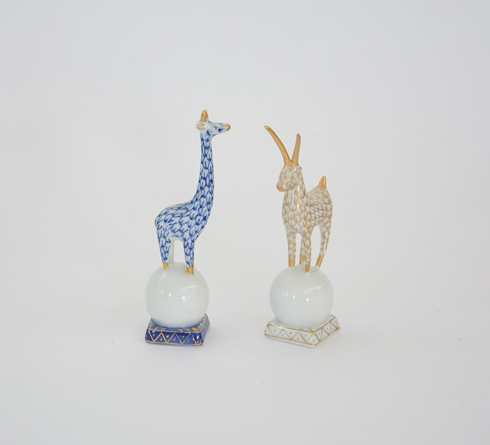 Lotto composto da due figure di animali in ceramica decorate in blu e dorature (h cm 13) (lievi difetti)