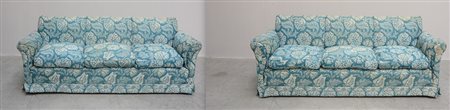 Coppia di divani a tre posti con rivestimento a tessuto fiorato color carta...