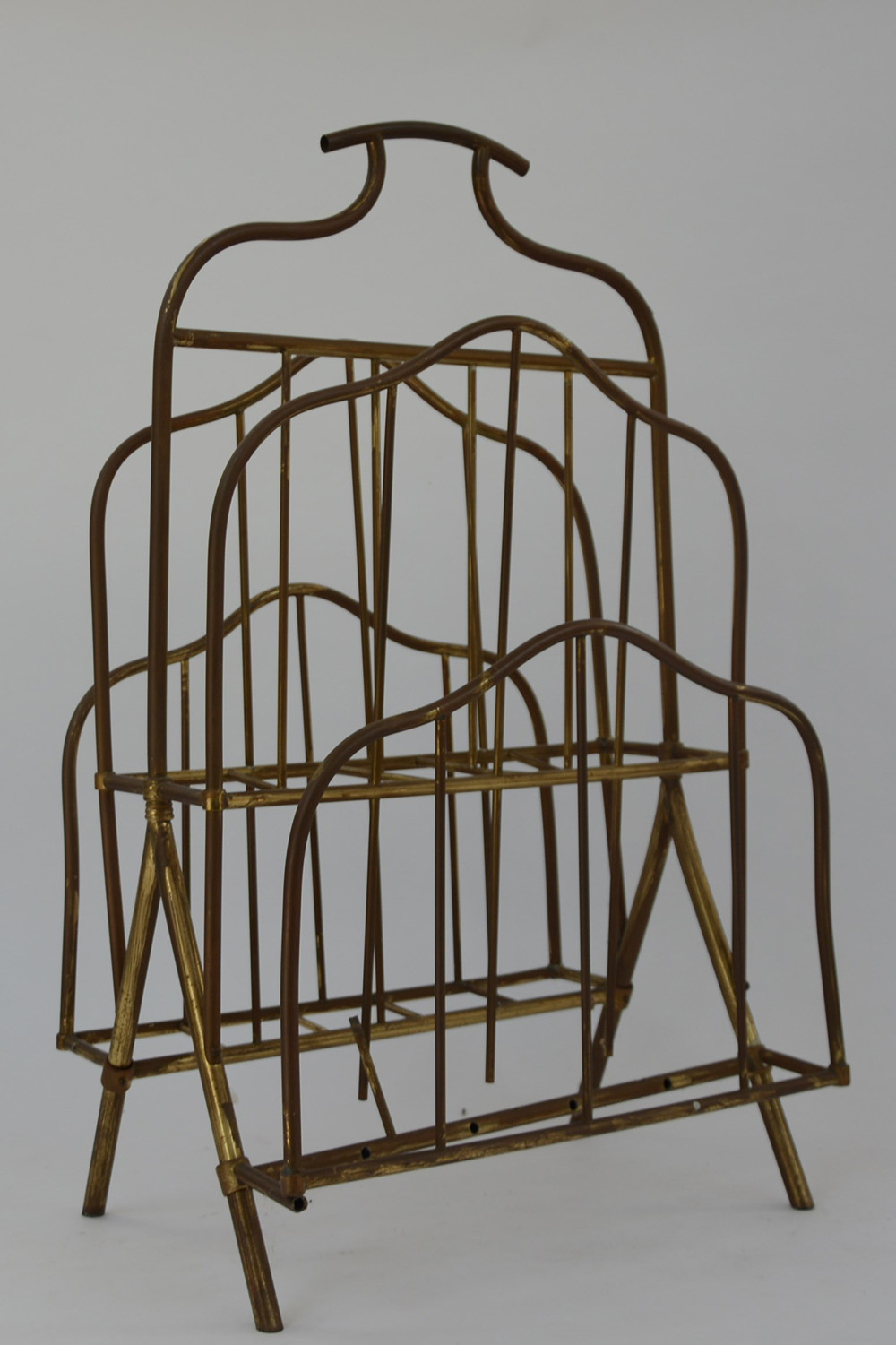 Porta riviste in tubolare di ottone. Italia, anni 40 (cm 39x72x20) (difetti e mancanze)