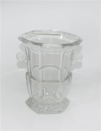 Manifattura francese Daum, Vaso biansato in cristallo molato (h cm 26) firma incisa alla base (difetti)