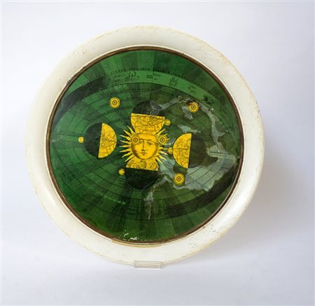 Vassoio in metallo decorato nel cavetto. Italia, anni 70 (d cm 46) (difetti)