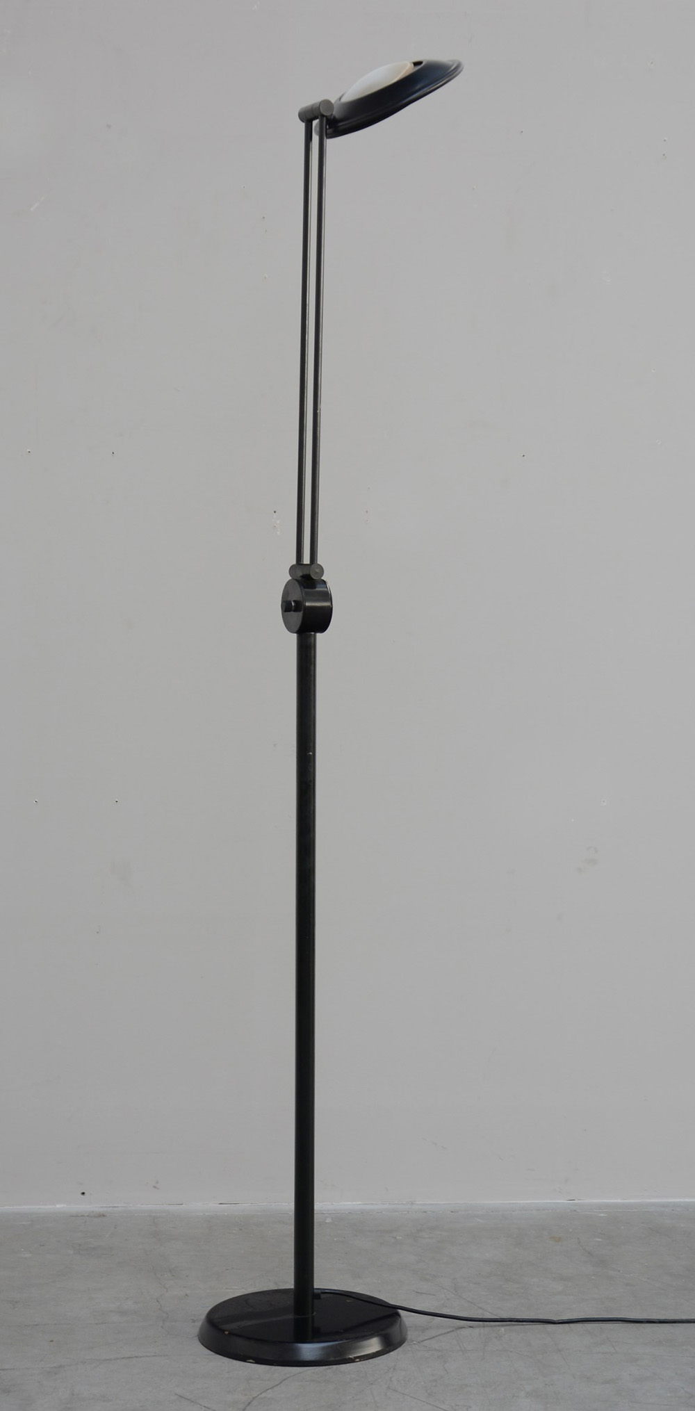 Lampada da terra alogena con struttura in metallo verniciato nero, braccio orientabile (h max cm 180) (difetti)