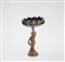 Manifattura centro-europea Alzata Art Noveau con base in fusione metallica a figura femminile inscritta Iris reggente ciotola in vetro iridescente (h cm 26,5) (difetti e restauri)