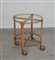 Carrello portavivande di forma circolare in legno massello e ottone, due ripiani in vetro. Italia, anni 50 (d cm 69, h cm 70) (difetti)