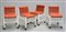 Quattro poltroncine con struttura in legno massello laccato bianco e rivestimento in pelle rossa. Italia, anni 70 (lievi difetti)