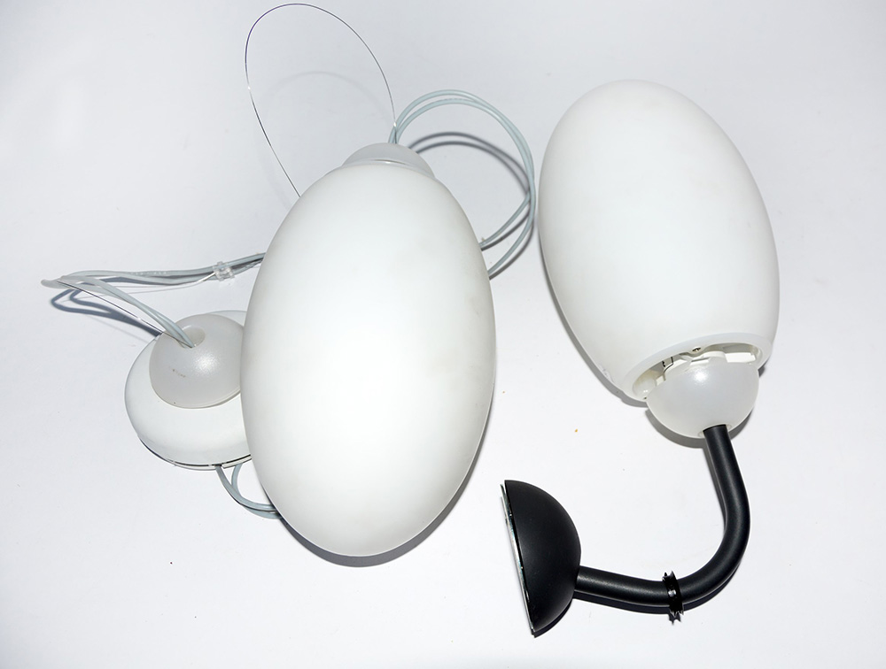 Achille Castiglioni (Milano 1918 - 2002) e Paolo Ferrari (Milano 1948) Lotto composto da una applique e una lampada a sospensione modello "Brera". Produzione Flos, Milano, 1962. Acciaio e vetro soffiato acidato (misure diverse) (lievi difetti)