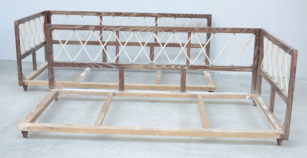 Coppia di letti razionalisti in rovere cmassello e corde in tessuto. Italia, anni 30 (cm 206x76x105)