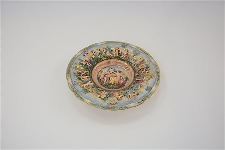 Manifattura C.A.S. Piatto in ceramica policroma decorato in rilievo con putti...