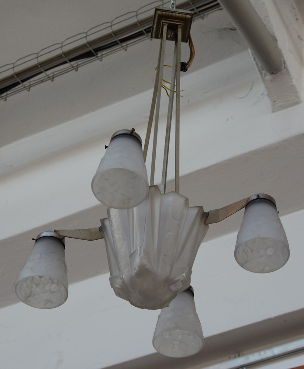 Muller Frères, Lunéville Lampada a cinque luci a sospensione in fusione di...
