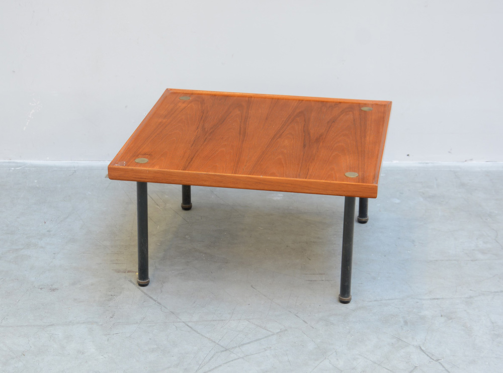 Fabrizio Bruno Tavolino sovrapponibile della serie "Konvival". Produzione Klan, Italia,1957. Ottone verniciato nero, ottone e legno teak bordato e impiallacciato. Marcato a fuoco sotto il piano (cm 60x32x60) (lievi difetti) Bibliografia: "Domus" n. 337, novembre 1957, rassegna, s. p.; "Rivista dell'arredamento", n. 36, dicembre 1957, pubblicità