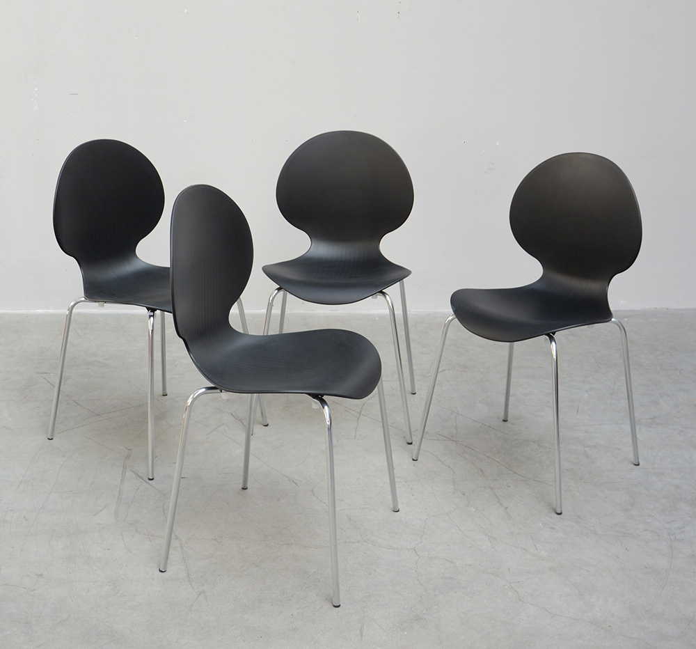 Lotto composto da quattro sedie modello "Bunny". Produzione recente Sintesi. Acciaio e polipropilene nero (cm 48x85x51) (lievi difetti)