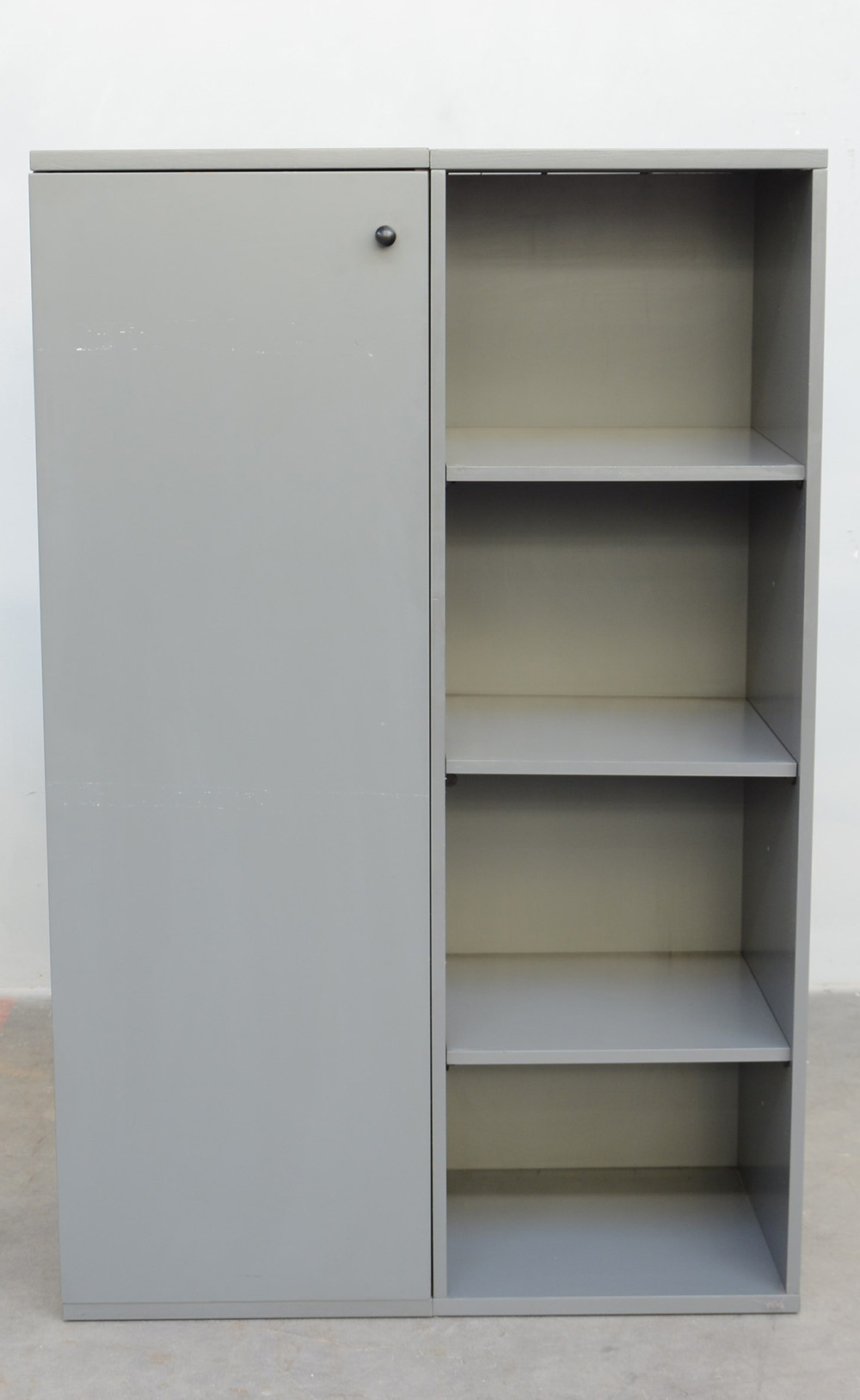 Jonathan De Pas (Milano 1932 - 1991), Donato D'Urbino (Milano 1935), Paolo Lomazzi (Milano 1936) Coppia di mobili da ufficio modulari ad ante e a vista modello "Jointed" in legno verniciato grigio. Produzione BBB Bonacina (cm 45x140x45)
