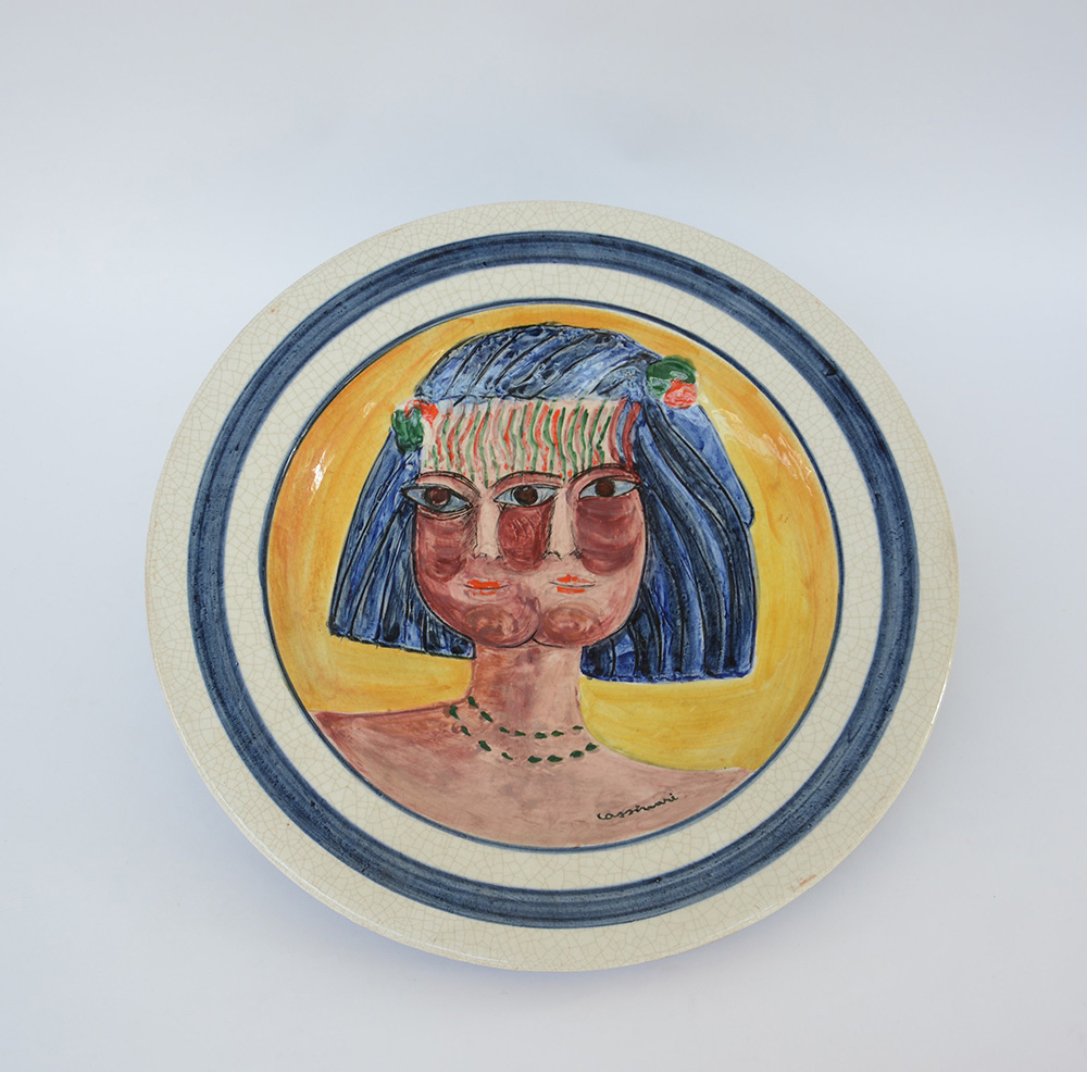 Bruno Cassinari (Piacenza 1912 - Milano 1992) piatto in ceramica smaltata(diam. cm 50,5)firmato. Produzione G. Rossicone, Milano. Ed. 1/50 (lievi difetti)