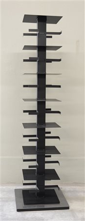 Bruno Rainaldi Libreria verticale girevole modello "Ptolomeo x4". Produzione CCR, Italia, 2007. Metallo verniciato nero e cromato (h cm 188) (lievi difetti)