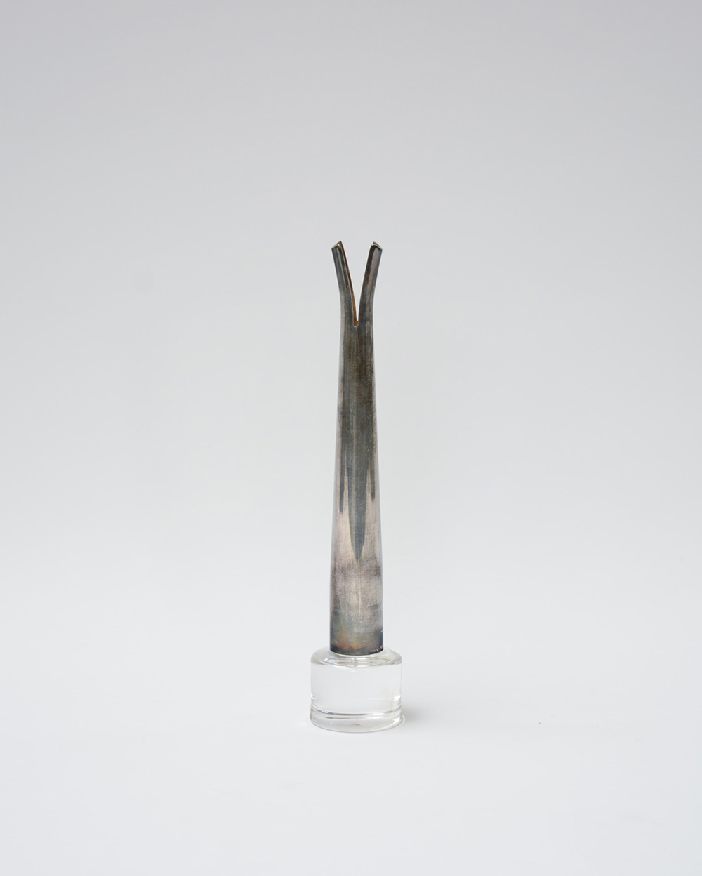 Lino Sabattini (1925 - 2016) Vaso portafiori in metallo con base in cristallo. In custodia (h cm 28)