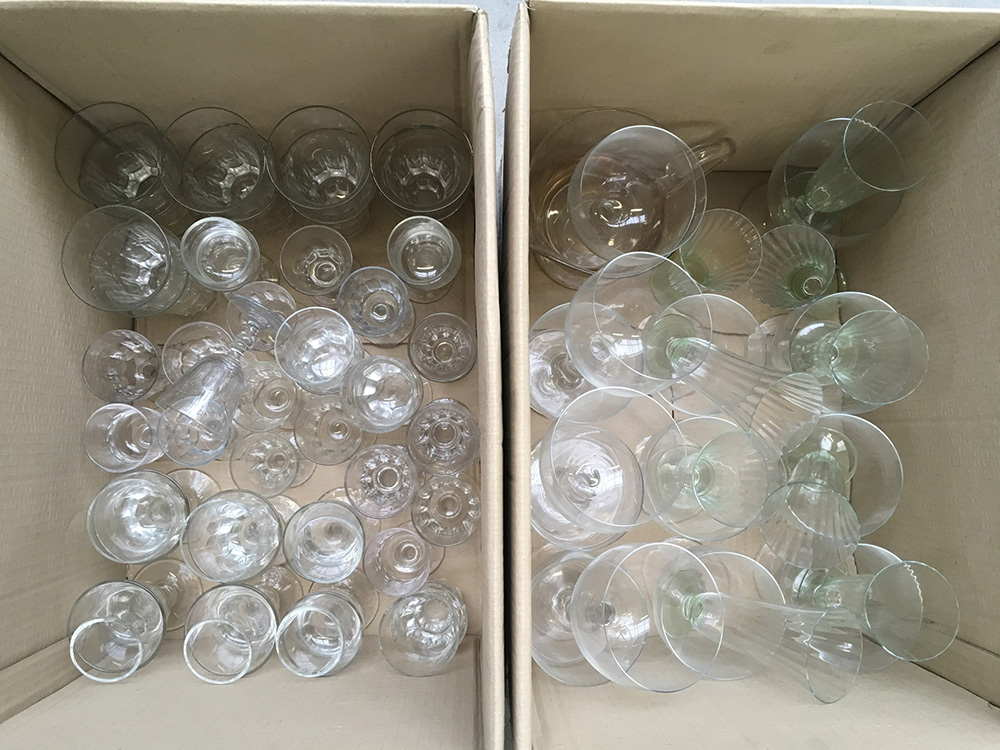 Lotto di due cartoni contenenti numerosi bicchieri di differenti fatture...
